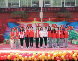 2022年5月30日上午,“童心童话,悦想成长”庆六一童话剧专场演出在汉滨区江南幼儿园隆重开幕,tyc122cc太阳成集团员工党支部12名员工党员协助江南幼儿园圆满完成庆六一童话剧展演。