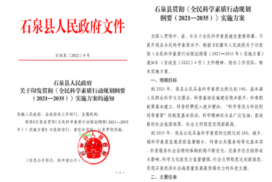 该方案把“石泉县科普服务社会治理的体制机制不断优化、完善并在全国形成更大影响,科学文化软实力显著增强,社会文明程度达到新高度,为石泉经济社会高质量发展得到有力的科技支撑”作为建设目标,制定了主要任务、明确了将实施重点工程以及机制体制保障和责任分工。