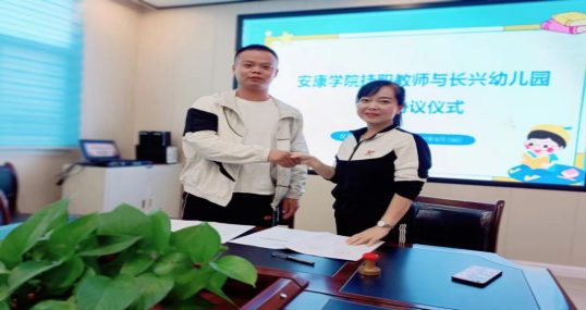 会上,长兴幼儿园以刘园长与胡海波老师签订了挂职教师协议。刘园长对胡海波老师的挂职热烈欢迎,并期望今后对园所的工作进行指导与支持。王刚经理对胡海波老师提出了要求与期望,促进学院与长兴幼儿园的长期合作交流,充分发挥桥梁纽带作用。