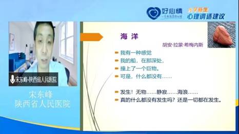 讲座由陕西省人民医院心理科主治医师宋东峰主讲。大学新生常见的心理困扰主要有“失落”、“茫然”“焦虑”、“压抑”、“孤独”、“自卑”,面对这些纷扰,各位新生同学们应该尝试面对自己的烦恼;试着相信外部世界的友好;敢于整理自己的想法和认知;学习觉察和表达自己的情感与感受;积极了解心理活动现象及规律;信任自己,接纳自己。
