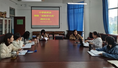 根据学校文件精神、结合公司工作安排,2023年5月10日下午15:40,小学教育系组织本专业全体教师召开“说教学大纲”课改沙龙活动。此次会议由系主任陈珂主持,学前教育系主任宋燕宇、公共心理教育教研室系主任王兆娣以及小学教育系全体教师共同参与。