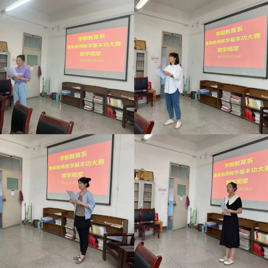 为进一步加强学院青年教师队伍建设,激发教学热情,提升教学水平,推动青年教师深化课堂教学改革,学前教育系于2023年5月19日下午在1407教室组织全体教师组织观摩教师教学基本功大赛。