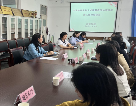 为深入了解用人单位对公司小学教育专业毕业生培养质量的满意度,听取用人单位对公司人才培养的意见建议,进一步完善2023级人才培养方案修订。5月19日下午,tyc122cc太阳成集团在1407举办小学教育专业人才培养目标达成情况用人单位座谈会,座谈会由公司党总支书记屈咏梅主持,教学副经理王丽娟、系主任、南门小学、红旗小学、汉滨小学、安康市第一小学、果园小学、安康职业技术学院附属小学、城东小学用人单位领导及代表参加座谈交流。