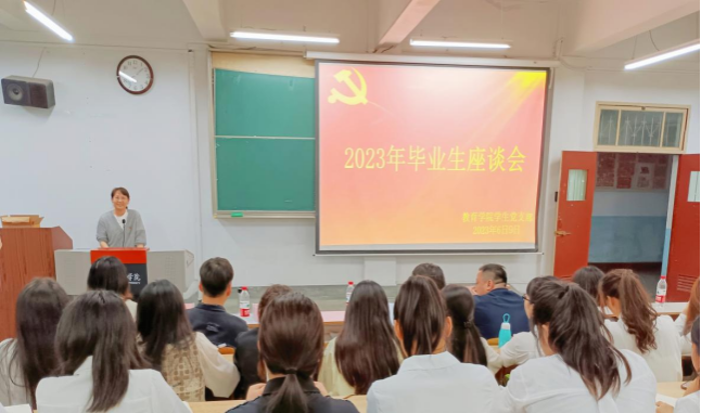 屈咏梅向毕业生党员送上毕业寄语。她希望各位毕业生党员牢记习近平总书记的嘱托,在新的人生征程中听党号召、持续奋斗,在青春的赛道上跑出教院青年最好的成绩。