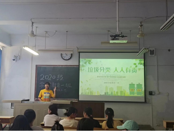 各班级班委积极查阅有关垃圾分类的知识,讲解垃圾分类的意义,日常垃圾分类的方法,呼吁同学们积极参与垃圾分类,做校园生活垃圾分类的推动者、示范者和宣传者,积极以身作则并带领身边的同学们、家人们正确开展垃圾分类,切实响应文明绿色校园创建的号召,为文明校园生态环保尽一份责,为美丽绿色校园建设出一份力。