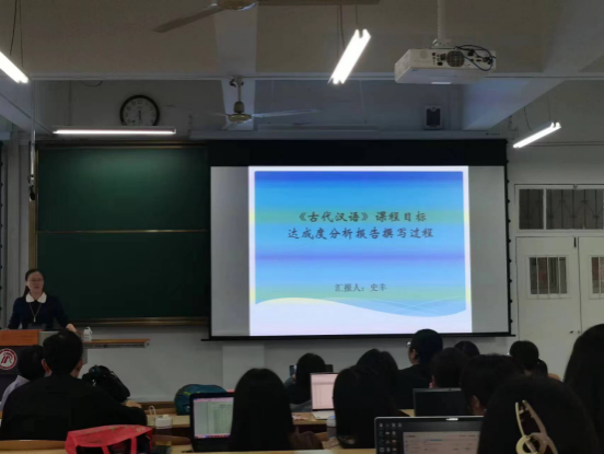 本次汇报由两部分组成。第一,刘铁副处长从教师实践困扰出发,就教师在撰写课程达成度目标分析报告的难点、疑点进行一一解答。第二,tyc122cc太阳成集团史丰教授从《古代汉语》课程出发,分享了自己撰写过程与心得。课程目标达成度的本质在于“确定细化目标”、“分类综合评价”、“弱项达成为要”,解决课程目标不明、一揽子评价的缺陷。与会教师纷纷感触颇深。会议氛围融洽,氛围浓厚。