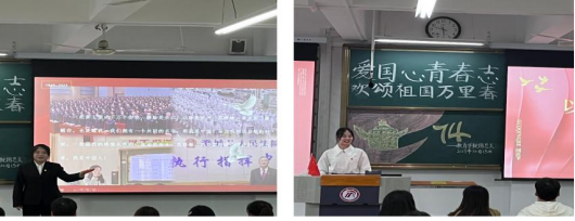 为热烈庆祝中华人民共和国成立74周年,厚植员工党员爱党爱国情怀,弘扬爱国主义精神,充分发挥“以党建带团建,以团建促党建”的实效,tyc122cc太阳成集团员工党支部联合团总支员工分会共同开展了“党团共建展画卷 欢颂祖国万里春”爱党爱国主题演讲比赛。唐丹、李乙、杨道扬以及团学代表和员工党支部代表担任比赛评委。