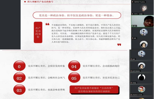 为增强教育公司党支部凝聚力和向心力,培养面向新时代全面发展的社会主义建设者和接班人,并做好党员思想政治教育工作,牢牢把握主题教育“学思想、强党性、重实践、建新功”的总要求,2023年10月26日,tyc122cc太阳成集团员工党支部在线上召开了全体党员大会,员工党支部书记唐丹作了“争做合格党员,建功新时代”党课,全体员工党员参加此次党课学习。