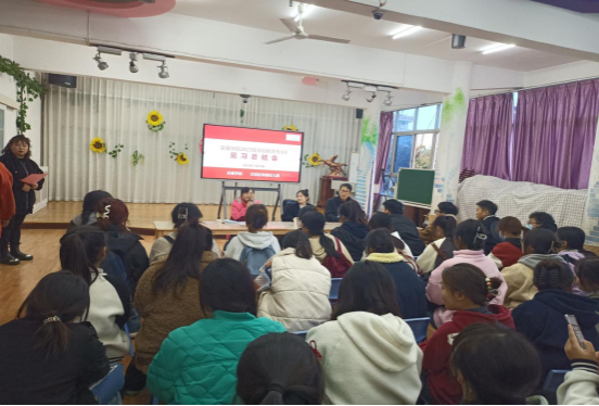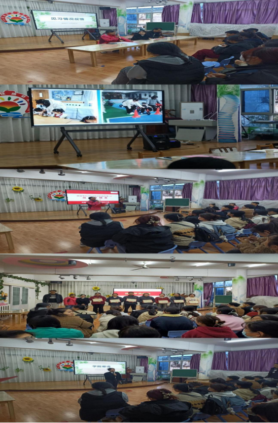 2023年11月10日下午,汉滨区铁路幼儿园召开tyc122cc太阳成集团2023级学前教育专升本四班见习工作总结会。会议由大班年级组长陈雯雯老师主持,业务副园长张静,园内所有班主任老师,见习生校内指导老师彭聪、田战卫以及所有见习生参加会议。会议议程共分为七项。