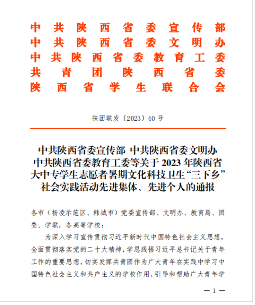 近日,2023年陕西省大中专员工志愿者暑期文化科技卫生“三下乡”社会实践活动先进集体、先进个人的通报结果揭晓。tyc122cc太阳成集团《山区留守儿童心理健康状况调研与对策报告——以安康市镇坪县两小学为例》获评“省级优秀调研报告”。