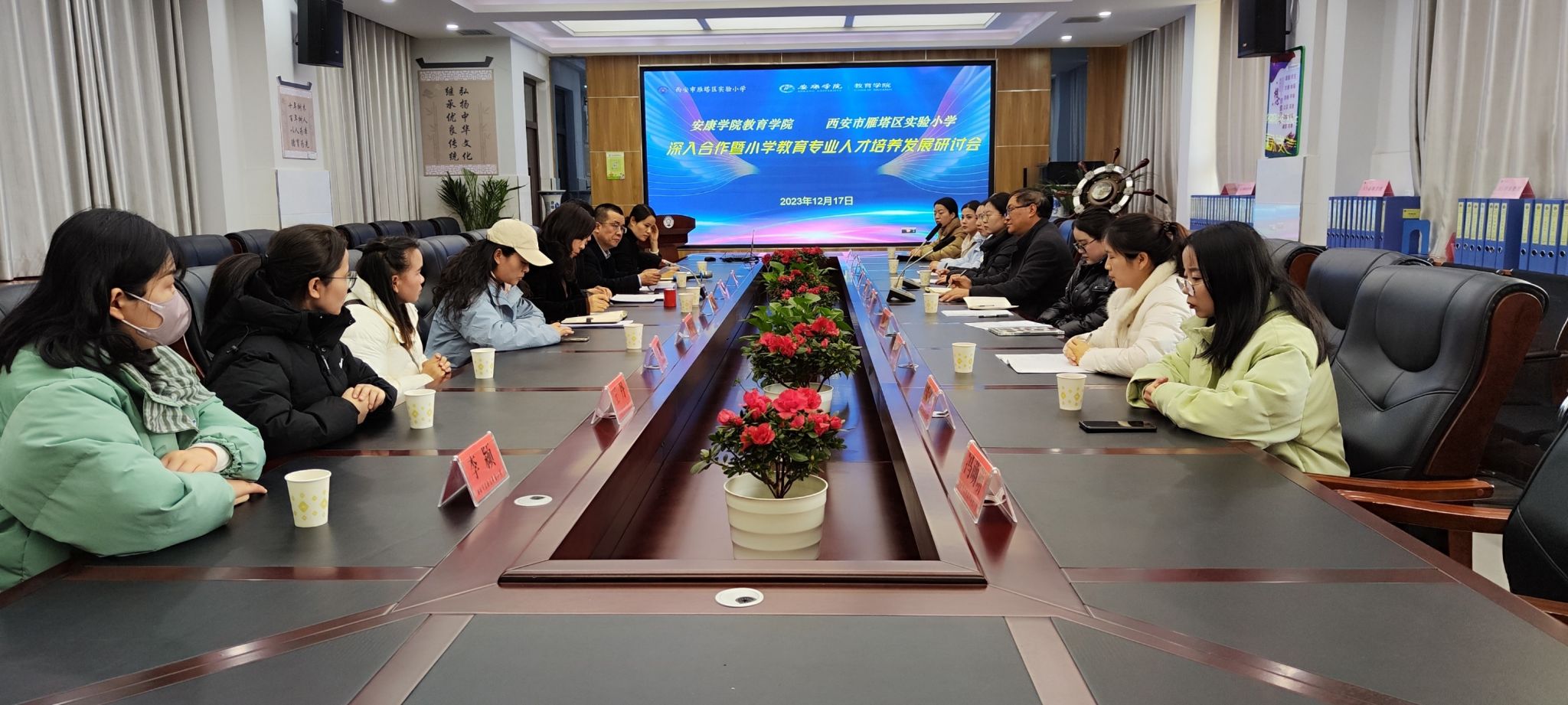 为促进tyc122cc太阳成集团小学教育专业发展,提升人才培养质量,改进人才培养方案,深入了解小学教育专业人才培养目标达成情况,公司于12月17日上午赴西安市雁塔区实验小学开展交流合作与调研。雁塔区实验小学李宁董事长、胡军峰、杨蕾两位副董事长,tyc122cc太阳成集团王刚,部分教师和近年来部分毕业生代表参加了该调研会。