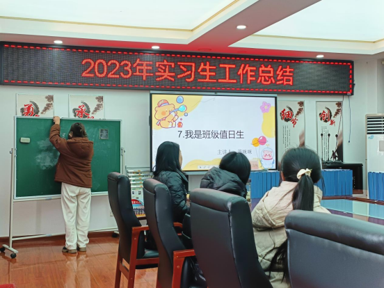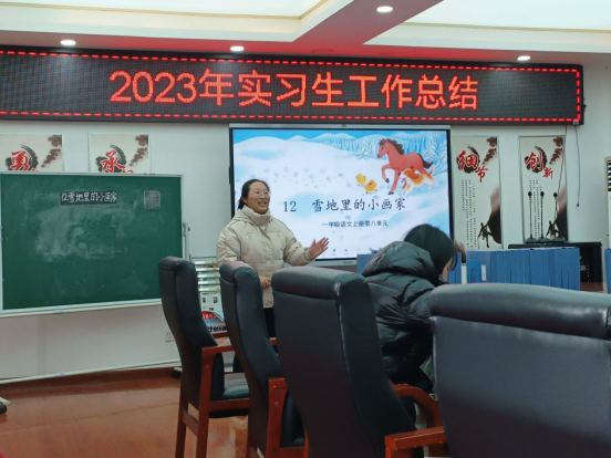 在正式开始前,在实习负责人的引导下同学们到达指定会议室进行本次教学观摩活动。首先由大四实习员工按照一定的顺序逐一进行课程的展示,《9+几》的课程通过图文结合的方式进行讲解,逻辑清晰、方法直观明了整个讲课环节完整且精炼;一年级上册的《雪地里的小画家》授课人员以图片和生活实际相联系起来,充分考虑到小学低年级员工思维的具体形象,利用生活常识进行教学,极大地调动了员工上课的积极性;课程《我是班级值日生》通过有效的道德与法治的学习,员工可以树立健康积极的道德评判体系,能够在内心有一杆道德的撑杆,树立积极向上的人生奋斗目标,为以后的人生成长以及其他学科的学习打下坚实可靠的基础。其次,由一位实习员工为我们展示作为一名师范生如何进行说课,通过说课可以帮助教师不断优化自己的教学过程和教学效果,为员工们带来更加精彩的课堂。活动的最后由公司实习员工进行了本学期实习工作的总结,对三个月以来汉滨小学老师的细心培养心怀感激之情。