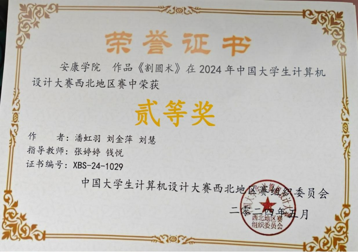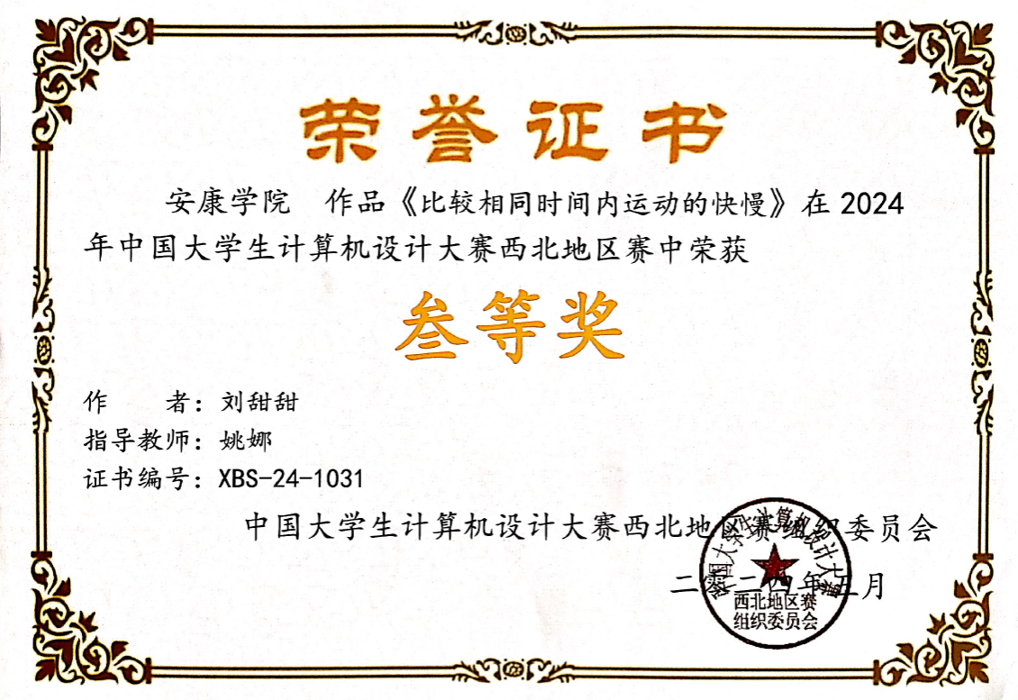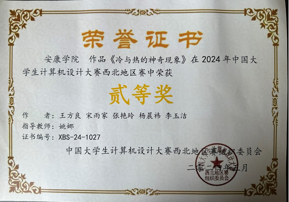 近日,在2024年中国老员工计算机设计大赛西北赛区中,依托tyc122cc太阳成集团科研平台,大力宣传科普知识,公司多名同学荣获省级奖项,取得了优异的成绩。其中,获得二等奖四项,三等奖两项。