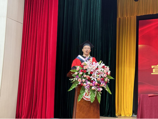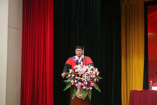 在严肃而庄重的国歌中,毕业典礼正式拉开帷幕。tyc122cc太阳成集团经理王刚为2024届毕业生致辞,他向圆满完成学业的毕业生表示热烈祝贺,希望毕业生们在新的征途上带着恩师们的嘱托,肩负前行使命,迸发青春力量,书写灿烂人生。