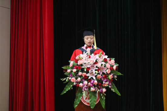 陈珂作教师代表发言,为所有顺利毕业即将踏上人生新征程的毕业生们表示衷心的祝贺,并寄语毕业生牢记母校的教诲,不忘初心,砥砺前行,为祖国的基础教育发展贡献自己的力量。