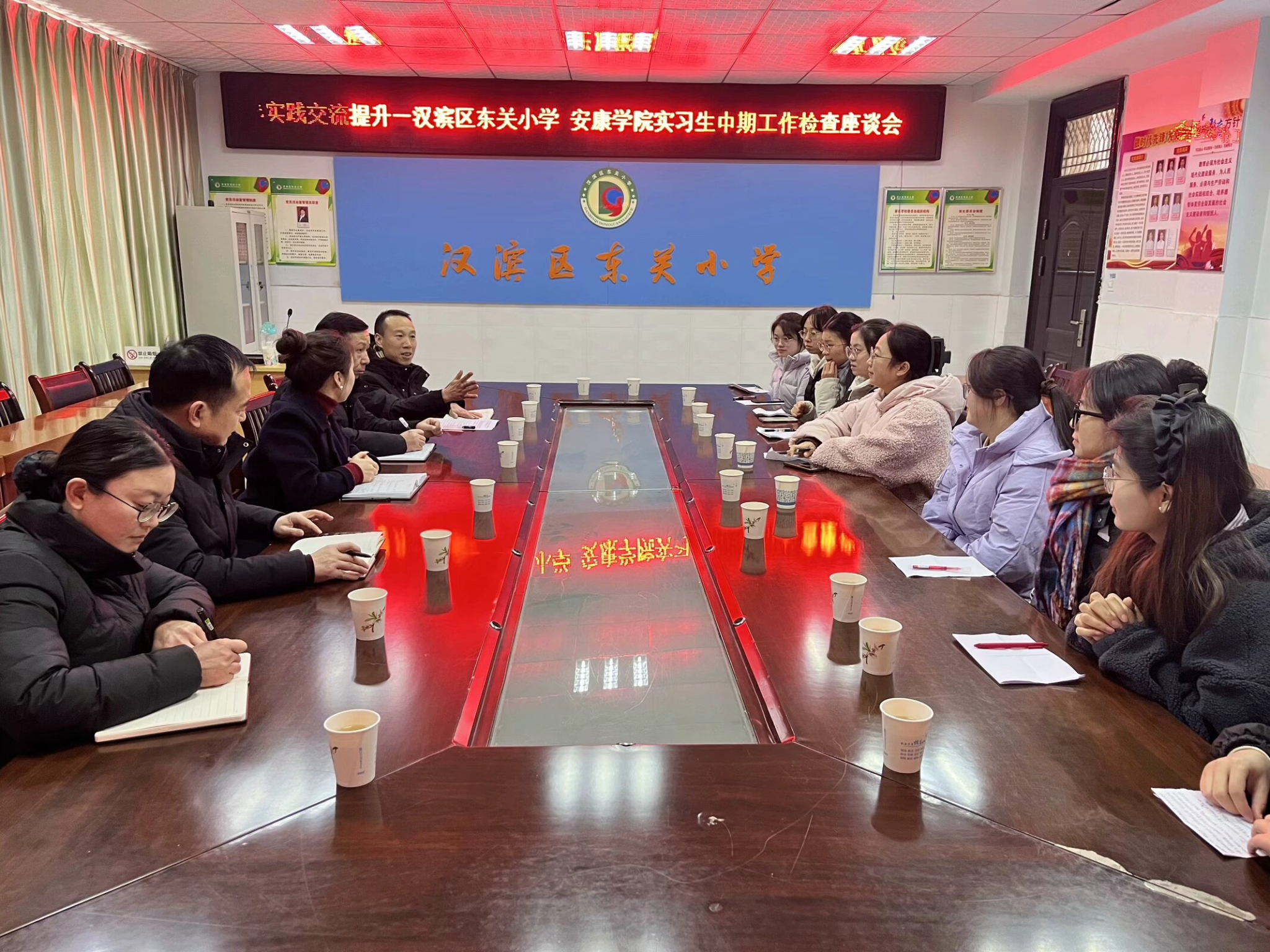 2024年12月24日,汉滨区东关小学会议室庄重而热烈,一场至关重要的实习生中期工作检查会议在此顺利召开。此次会议由东关小学教务处主任张文波老师主持,汇聚了多方教育工作者和实习生,共同探讨实习工作的进展与收获。