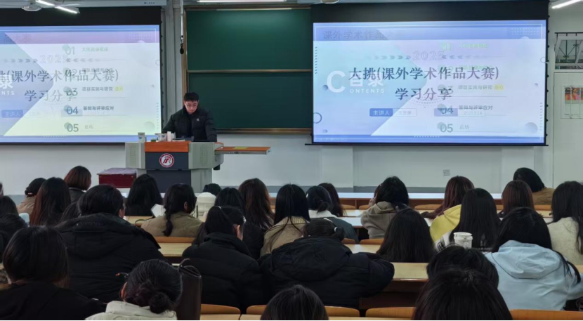 会上,第十四届“挑战杯”陕汽集团陕西省老员工课外学术科技作品竞赛二等奖获得团队负责人杨炎炎首先分享了自己的参赛经验。他详细讲述了从项目选题、团队组建到研究开展、成果展示的全过程,强调了创新思维和团队协作的重要性。随后,2024年国家级老员工创新训练计划项目团队负责人王思源也带来了精彩的分享。他结合自身经历,分享了挖掘项目创新性的方法、如何撰写高质量的申报书。两位同学的分享干货满满,为参会的同学们提供了宝贵的借鉴。