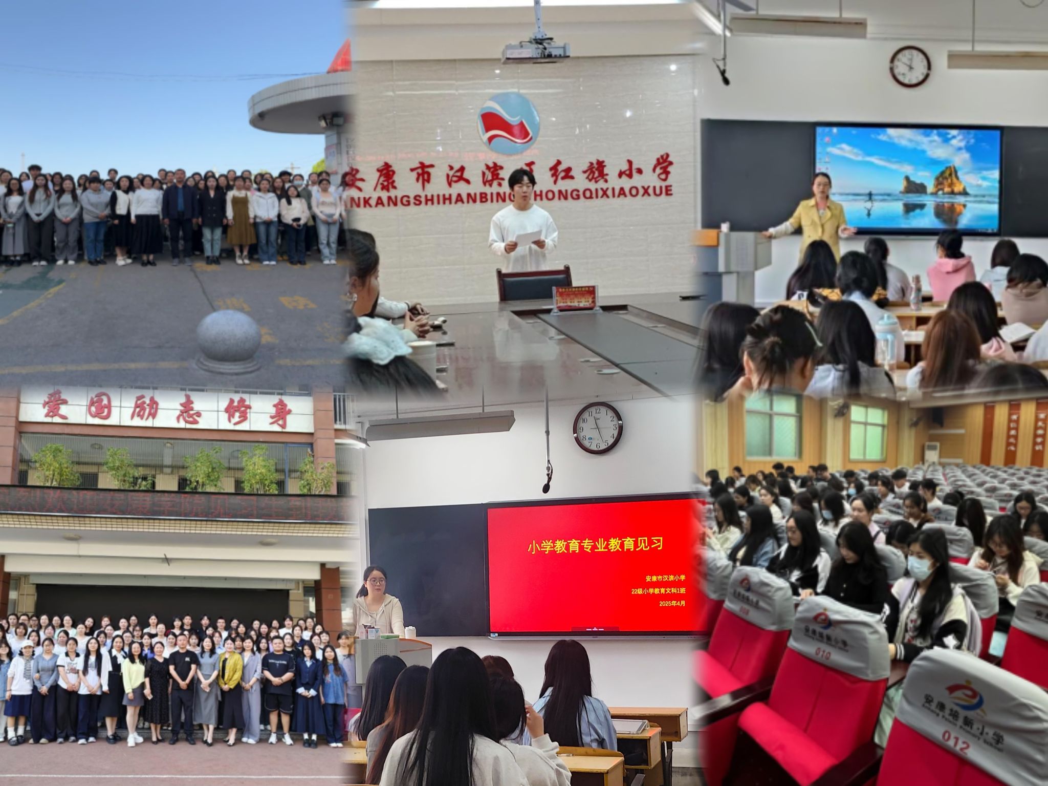为助力师范生打破理论与实践之间的壁垒,进一步提升提升公司产品素养,强化专业认知,2025年4月14日至18日,tyc122cc太阳成集团小学教育系3个本科班和2个专升本班在学院的统一安排下,由杨道扬、王伦磊、李乙、钱悦、张紫怡5位老师带领,分别前往汉滨小学、市一小、培新小学、红旗小学和南门小学开展为期一周的教育见习活动。