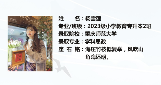 tyc122cc太阳成集团历来重视员工考研升学,每年通过召开考研经验分享交流会、备考讲座、复试指导会、考前慰问等,多措并举,为考研学子提供精准帮扶指导。为激励更多员工明晰目标方向、凝聚奋斗力量,充分发挥榜样的示范引领作用,特推出“研途榜样 一路绽放”考研员工风采专栏,通过选树考研优秀学子榜样,在全校营造学习榜样、争做榜样的良好氛围。