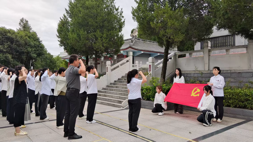在党员代表郝欣婷的带领下,全体党员面向党旗,高举右拳,重温入党誓词。“我志愿加入中国共产党……”铿锵誓言回荡在陵园上空,传递出不忘初心、牢记使命的坚定信念。随后,团员代表钟佳丽带领全体团员面向团旗庄严宣誓,青春之声昂扬坚定,展现出青年一代传承红色血脉、担当时代重任的决心。
