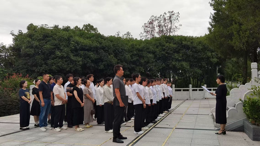 松柏苍翠,丰碑屹立。活动由党总支副书记王毅主持,在革命烈士纪念碑前庄严开始。全体师生整齐列队、静默肃立,向为民族独立和人民解放事业英勇献身的革命先烈默哀致敬,以最庄重的方式寄托对革命先烈的深切缅怀与崇高敬意,现场静谧无声,唯有松柏环绕,见证这份跨越时空的追思。