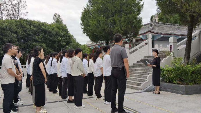烈士陵园祭奠,传承红色基因。9月5日,学院教师党支部、员工党支部及员工团干部前往安康烈士陵园,开展“缅怀革命烈士,传承红色基因”主题教育活动。党总支书记王璐在现场讲授微党课,深情回顾了安康地区革命先烈为民族解放事业英勇奋斗的峥嵘岁月,激励师生以革命先辈为楷模,不忘初心、勇担使命。员工代表韩聪慧作表态发言,表达了继承先烈遗志、贡献青春力量的坚定决心。全体人员在讲解员的引导下参观了烈士纪念馆,通过珍贵的历史文物和影像资料,深切感受那段艰苦而光辉的革命历程。