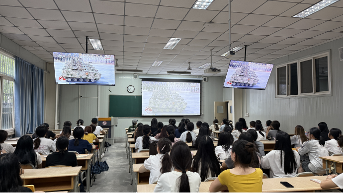 集中观看阅兵仪式,砥砺强国之志。9月3日,学院组织师生集中观看阅兵仪式。铿锵的步伐、威武的阵列、先进的装备,全面展现了国家实力的日益强盛,令在场师生心潮澎湃、倍感自豪。观看结束后,大家积极撰写观后感,抒发内心激动,表达珍惜和平、矢志报国的坚定信念。