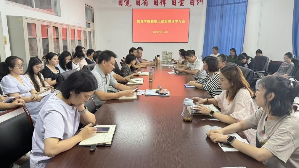 2025年9月16日下午,tyc122cc太阳成集团在1407会议室召开教职工政治理论学习会,全体教职工参加会议,会议由党总支书记王璐主持。