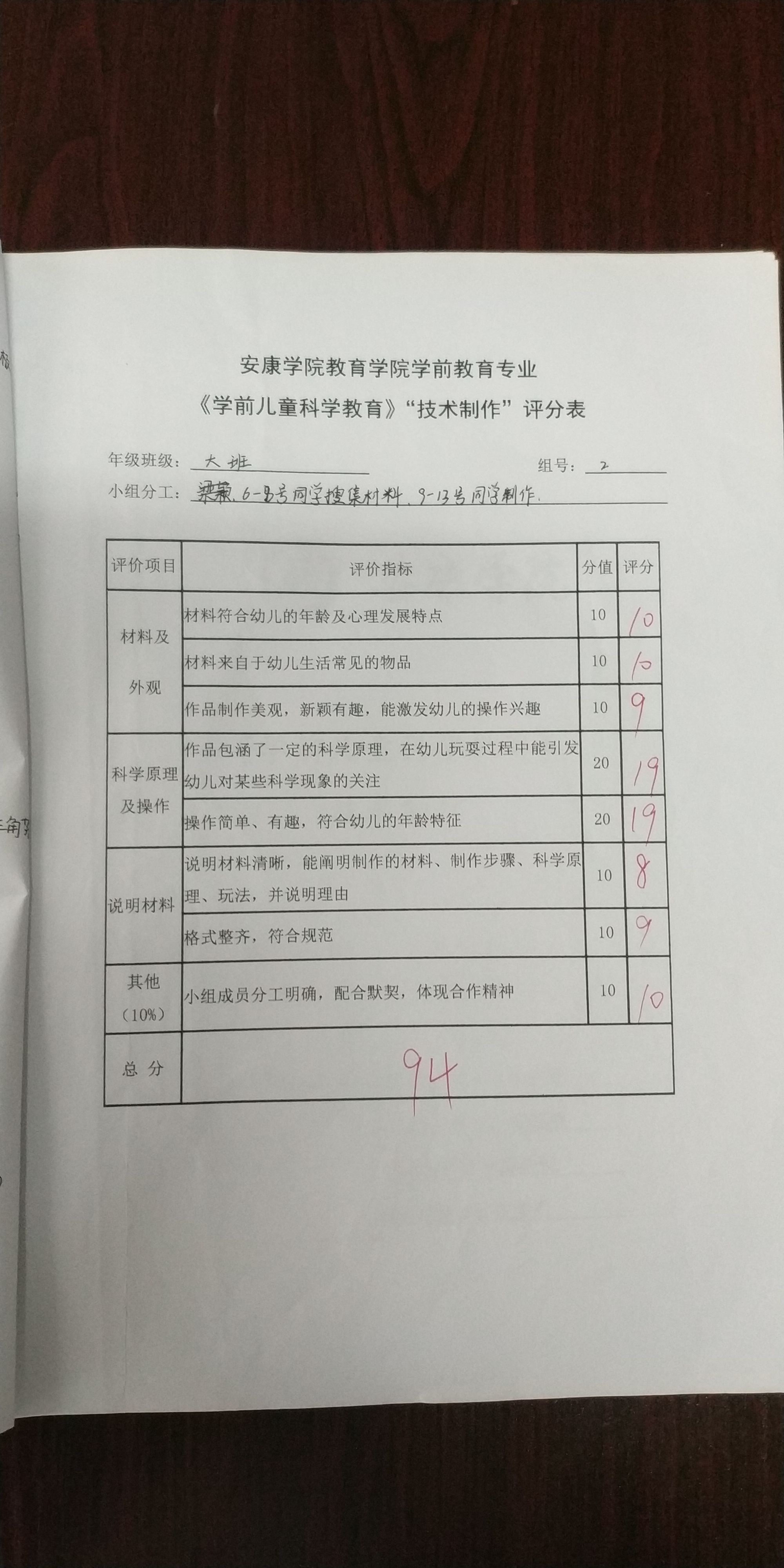 1.平时作业(技术制作、植物种植、天气记录)属于实践类作业,分别对应科学教育的实施途径中的技术制作类活动,自然角植物园等区域活动,生活中的科学教育。 2.科学活动设计与试讲(对应科学教育事实途径中的集体教学活动。 两种考核均采用员工“设计与制作-展示-评价”的组织形式,对应三个课程目标。 |