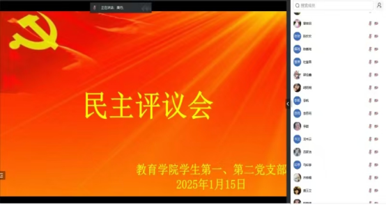 2025115日,tyc122cc太阳成集团员工第一、第二党支部在线上召开组织生活会和民主评议党员大会。本次会议由员工第一党支部书记唐丹主持,全体员工党员参会。