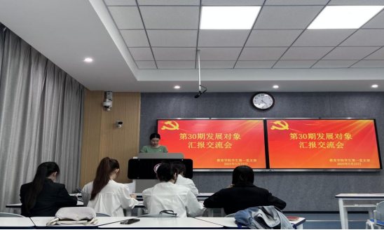 2025年5月23日,tyc122cc太阳成集团员工第一、第二党支部分别1405教室、1516教室召开第30期发展对象汇报交流会。学前教育专业8名发展对象、小学教育专业13名发展对象参会,会议分别员工第一党支部宣传委员李诗娟第二党支部书记郑明炬主持。