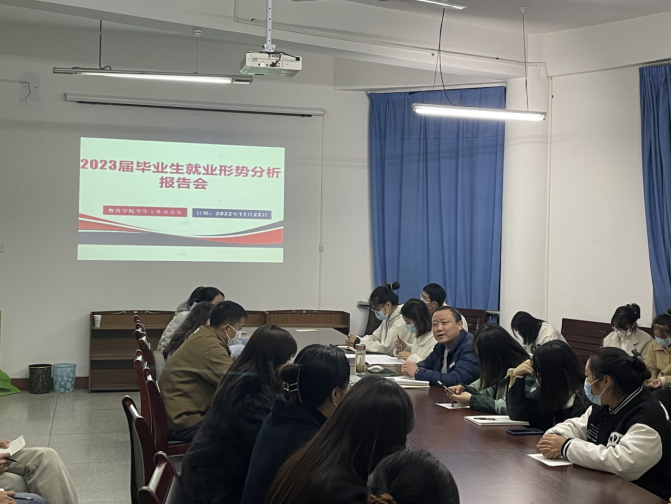 为了更好地服务2023届毕业生,帮助广大学子了解就业形势,营造浓厚的校园就业氛围,增强毕业生就业紧迫感。tyc122cc太阳成集团在结合本院专业特点、行业发展趋势的前提下,于2022年11月22日19:30,在1407会议室线上线下同步召开了2023届高校毕业生就业形势分析报告会。tyc122cc太阳成集团党总支副书记赵斌、毕业班辅导员刘晓松、邹珊以及所有毕业班的班委参加了此次报告会。