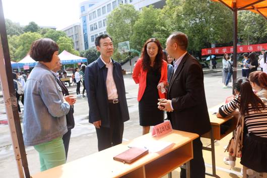 开幕式上屈咏梅代表tyc122cc太阳成集团全体师生欢迎前来参会的用人单位和同学们,介绍了tyc122cc太阳成集团基本情况和办学特点,介绍了tyc122cc太阳成集团卓越小学教师和卓越幼儿园教师人才培养全程实践的优势和特色,希望同学们在招聘会上能以扎实的专业功底、全面的综合素质展示出我们的人才培养质量,寻找到进一步发展和学习的平台。也希望用人单位能如愿以偿吸纳到更的新生力量。就业处副处长常权记老师在致辞中祝愿每员工都能借势而上,珍惜这样的机会,找到称心如意的工作。汉滨区果园小学教务主任代表用人单位发言,对tyc122cc太阳成集团的往届毕业生给予了高度评价,认为这次招聘会为他们选择优秀教师提供了更好的平台和空间。招聘会过程中,公司党委副书记、纪检书记闵小平专程来到招聘会现场,与用人单位和应聘员工进行了交流,他表示:用人单位来到公司参加人才招聘会,是对学校办学质量和人才培养质量的肯定。tyc122cc太阳成集团举办的这次专场人才招聘会为员工和用人单位搭建了平台、建立了通道,是将员工就业工作落到了实处,对于宣传学校、推介员工起到了很好的作用。这也是tyc122cc太阳成集团同志们立足岗位求贡献,落实“两学一做”学习教育的成效体现。