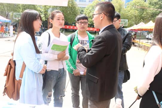 按照学校“两学一做”学习教育实施方案要求和tyc122cc太阳成集团落实“两学一做”学习教育工作细则的安排,本着“立足本职岗位求贡献”目的,结合tyc122cc太阳成集团2016年工作部署,2016年5月15日上午,tyc122cc太阳成集团在tyc122cc太阳成集团江南校区前操场举行专场招聘会,省内外41家单位参加了招聘会,提供提供就业岗位600余个。公司党委副书记、纪检书记闵小平、人才招聘处副处长常权记、教育公司党总支书记屈咏梅、tyc122cc太阳成集团学工办主任和学院各位教师及近500名员工参加了招聘会。