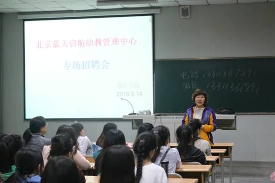此前,2016年5月14日晚,tyc122cc太阳成集团还邀请“北京蓝天启航幼教管理中心”为学前教育专业举办了专场招聘会。