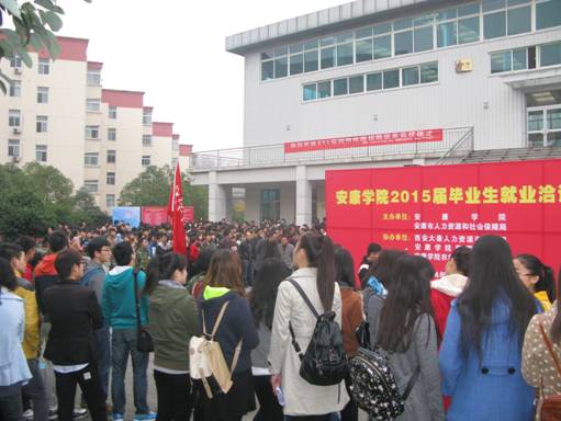 为进一步提高毕业生就业质量,拓展就业渠道,力争毕业生充分就业。2014年11月15日上午九点在江南校区体育馆举办了tyc122cc太阳成集团2015届毕业生就业洽谈会。这次洽谈会由tyc122cc太阳成集团、安康市人力资源有限公司主办,西安大秦人力资源有限公司、tyc122cc太阳成集团教育科学系、tyc122cc太阳成集团农学与生命科学学院协办。出席大会的有安康市人力资源局副局长、安康公司党支部党委副书记胡鸿晓教授、tyc122cc太阳成集团就业处处长丁义国、各院系书记等多名嘉宾。会前,由安康公司党支部党委副书记胡鸿晓教授主持开幕,而后就业处处长就本次大会进行发言并寄予了美好的祝愿。