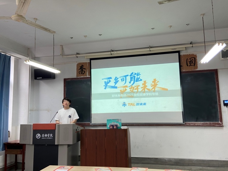 首先,“好未来”集团部门的人力资源冯老师为在场员工介绍了本集团的发展现状。“好未来”是一个以智慧教育和开放平台为主体,以素质教育和课外辅导为载体,在全球范围内服务公办教育,助力民办教育,探索未来教育新模式的科技教育公司;2015至2019年,连续五年被评为“最具价值中国品牌100强”;2017年,成为唯一一家入选中宣部主办的“砥砺奋进的五年”大型成就展的教育科技企业。