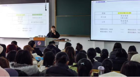 为帮助教团队格证考试的员工更好地了解考试政策、掌握备考策略、提升教资考试通过率;202535日,tyc122cc太阳成集团在1510教室组织开展教团队格证备考指导活动;特邀安康粉笔教育资深讲师舒悦主讲,各年级意向报考员工200余人现场聆听,活动由学工办主任罗从政主持